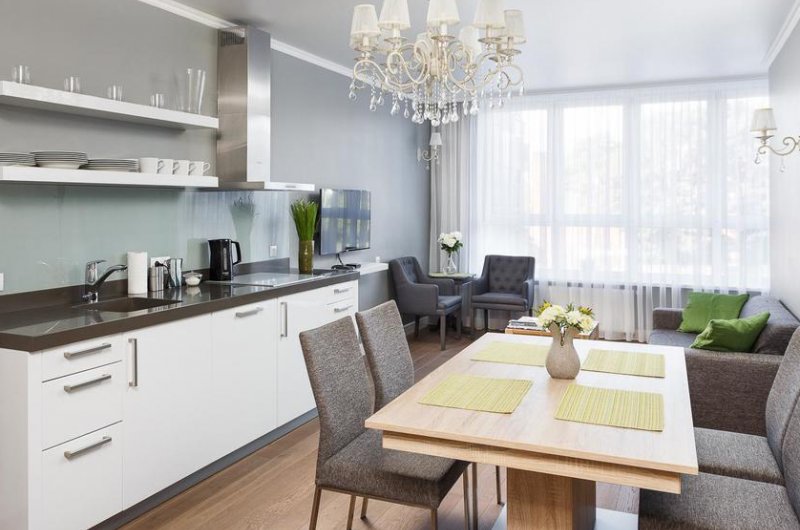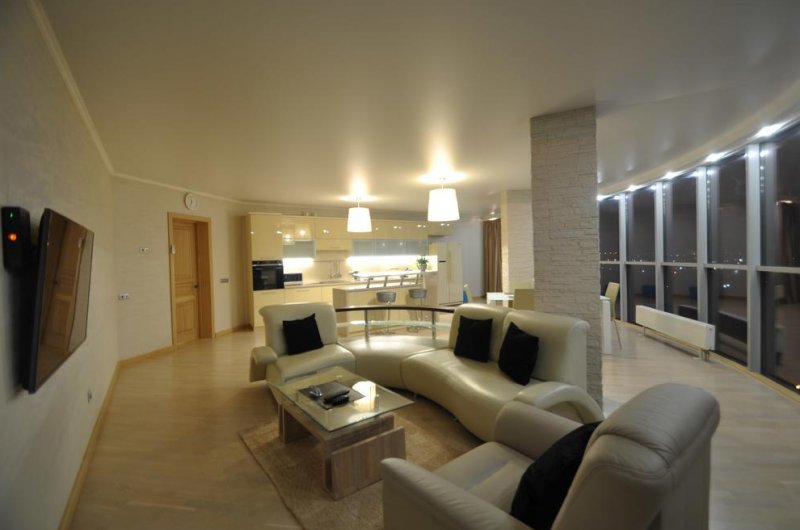 Полностью оборудованные для комфортного проживания апартаменты, оформленные в современном стиле с использованием светильников, мебели и других предметов интерьера от европейских производителей.